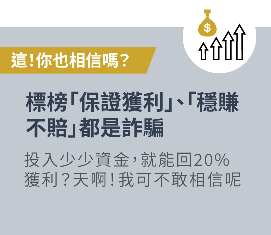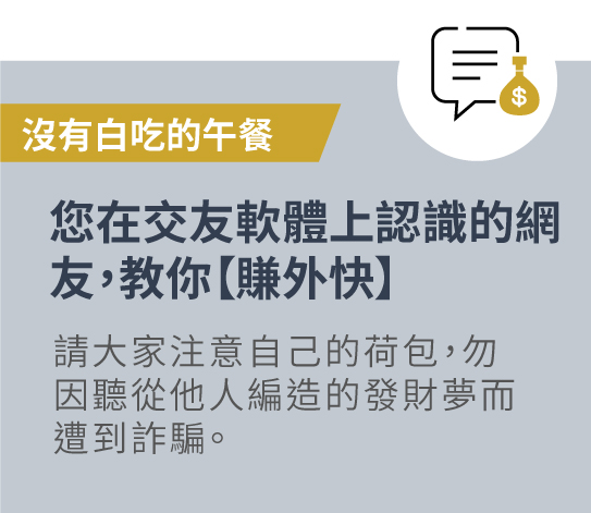 詐騙者在交友過程中會提到有高回報的投資機會,如股票、外匯、加密貨幣等,誘使受害者投入大量資金。這些投資項目往往是虛假的,受害者的資金一旦投入便無法追回。